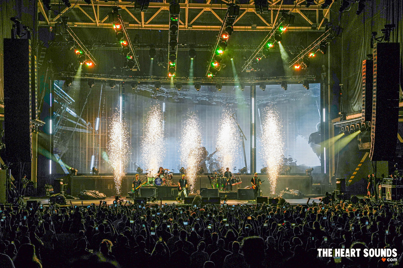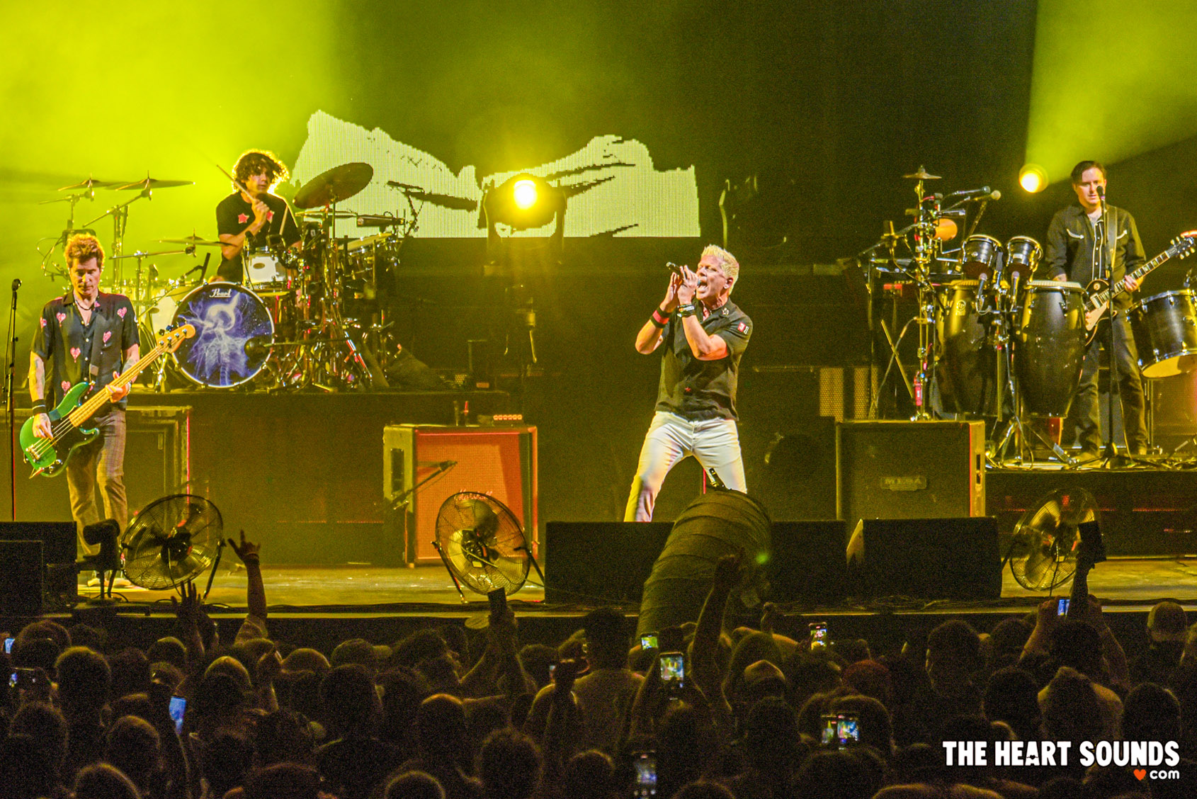 When the lights cut and The Offspring stormed out, Germania Amphitheater roared like a jet engine. Punk’s elder statesmen came out swinging, tearing straight into “Come Out and Play,” and immediately the crowd erupted. Flames shot skyward, bodies jumped in unison, and suddenly the decades between the band’s 90s heyday and 2025 felt like they’d collapsed into one endless mosh.