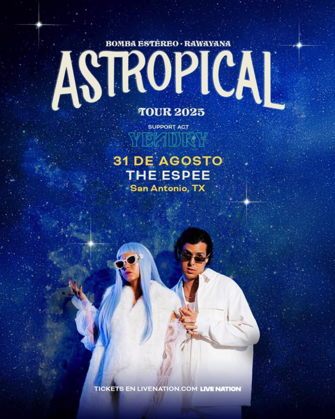 This Sunday, August 31, 2025, San Antonio will welcome a musical experiment that’s already reshaping the Latin alternative landscape. Astropical, the supergroup formed by Colombia’s Bomba Estéreo and Venezuela’s Rawayana, will arrive at The Espee for a night that promises to be as vibrant as it is unclassifiable.