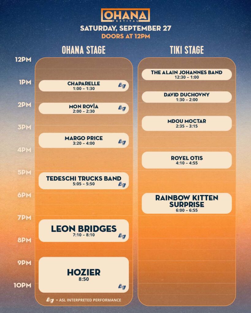 Saturday, Sept. 27 leans into soul and spirit, with Hozier headlining alongside Leon Bridges, Tedeschi Trucks Band,  Rainbow Kitten Surprise, and others.