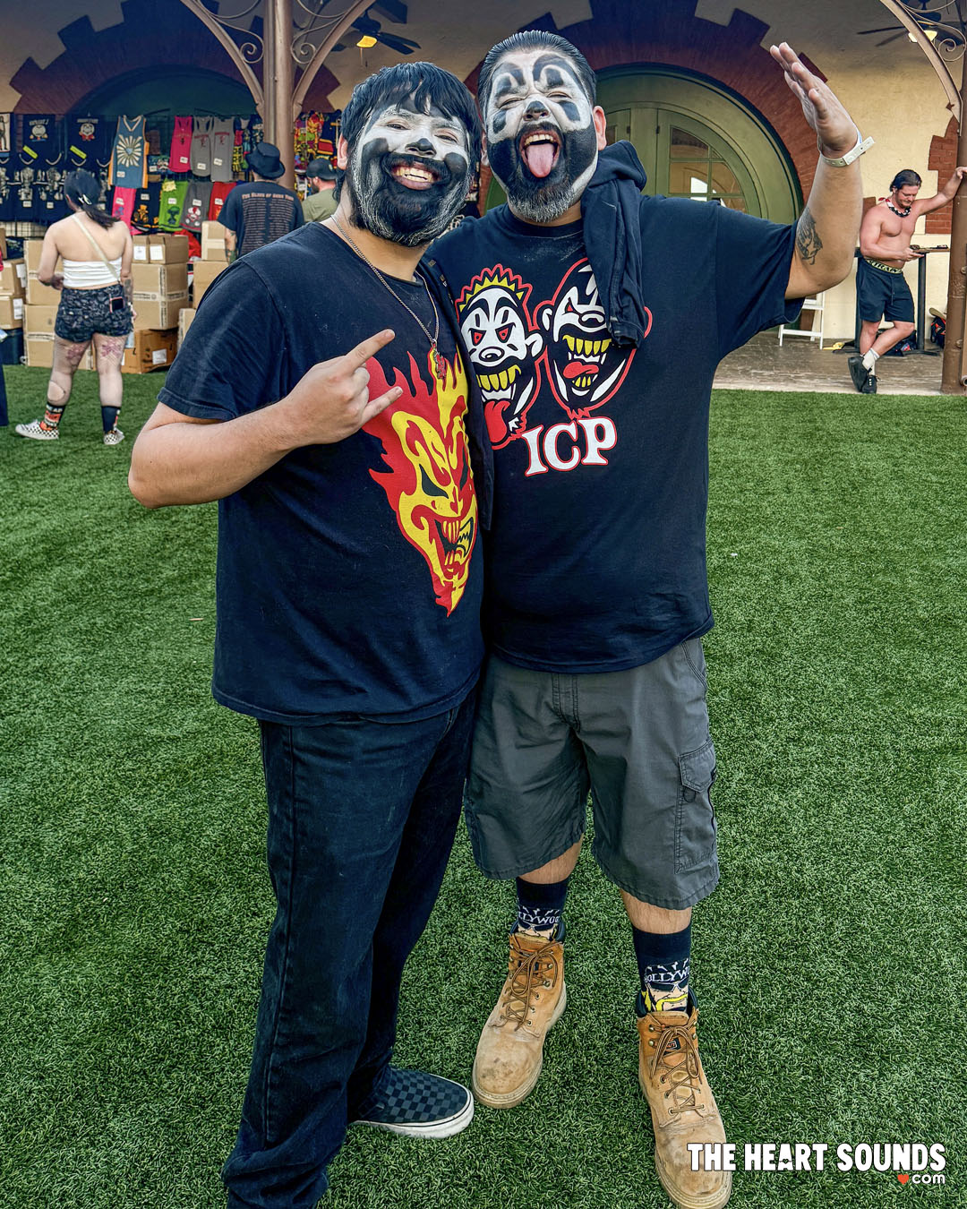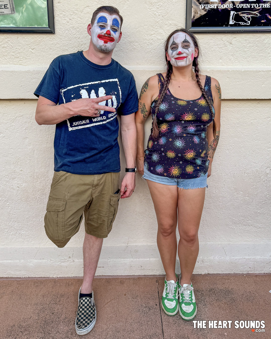 At the Espee tonight, the sea of fans arriving for Insane Clown Posse wasn’t just coming for the music—they were coming to show off the culture that has made the Juggalos one of the most visually distinct communities in music. Everywhere you looked, there was a riot of creativity: painted faces dripping with color, from sharp monochrome black-and-white classics to fluorescent takes that glowed in the stage lights. The Faygo-stained jerseys—oversized hockey shirts and vintage ICP gear—were practically uniforms, each carrying its own history of past tours and wild nights.