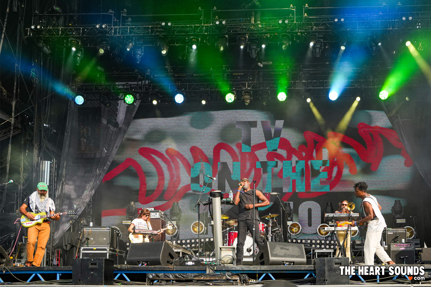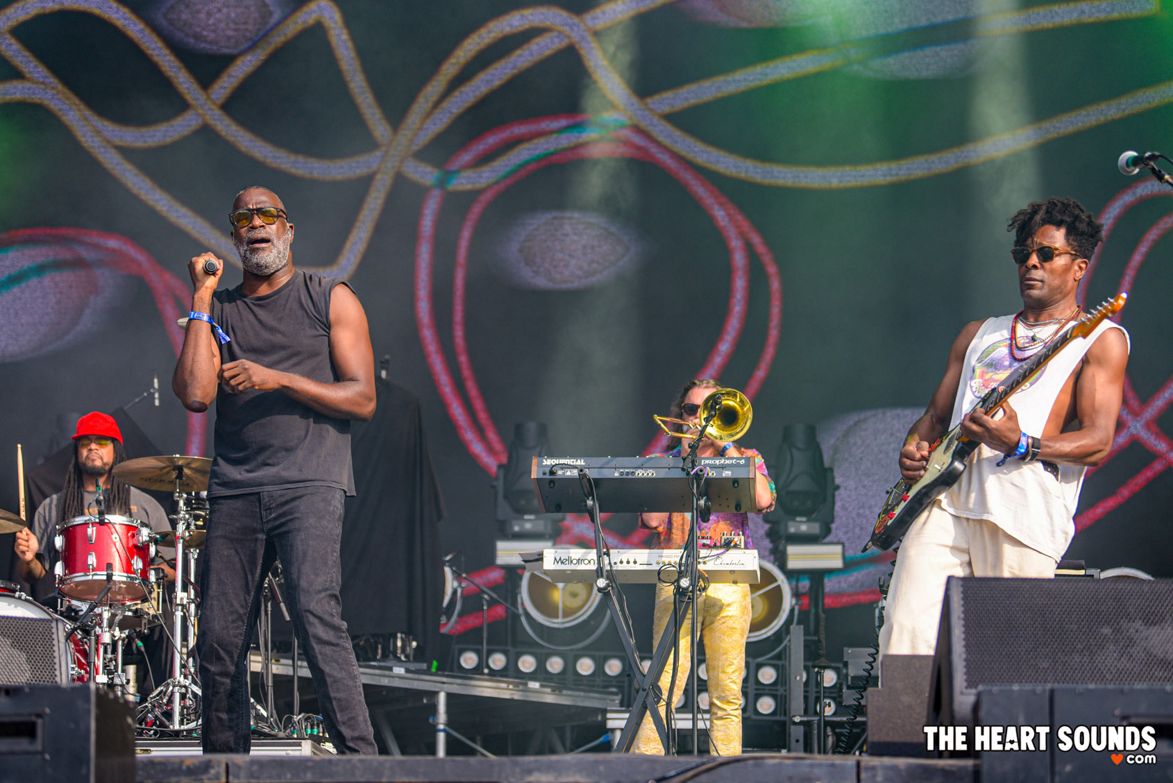 TV on the Radio took a different route from many of Saturday’s high-octane acts, leaning into atmosphere, groove, and layers of sound. Their set unfolded like a journey, shifting between sprawling soundscapes and jagged bursts of energy. Songs like “Young Liars,” “Wolf Like Me,” and “Golden Age” brought the crowd to life, bodies moving instinctively to the pulsing beat, while moments like “Staring At The Sun” wrapped the field in shimmering textures.