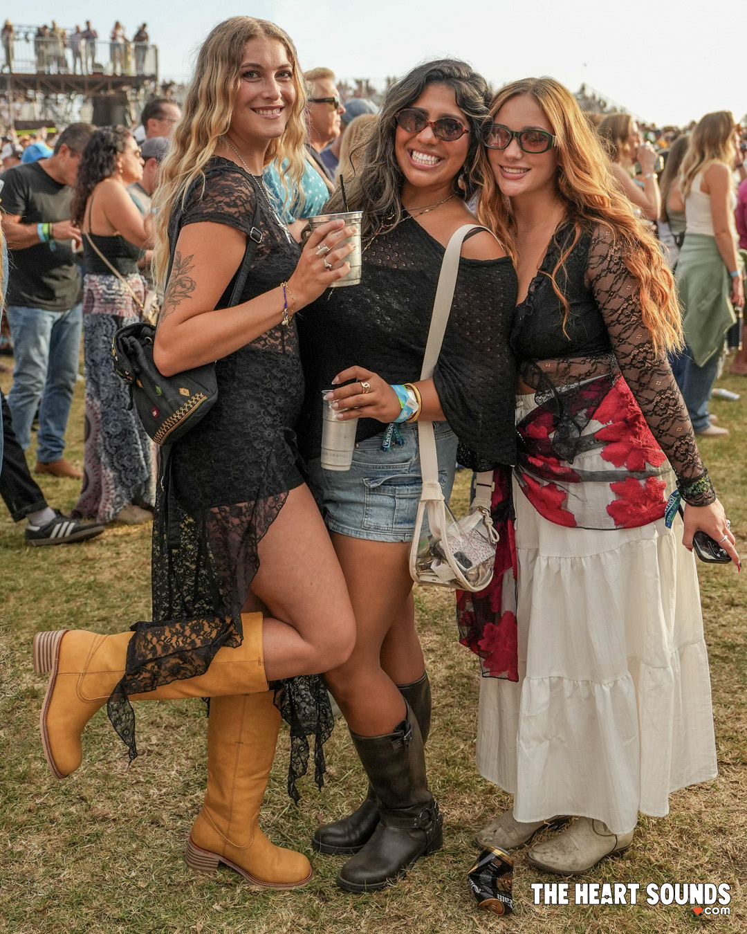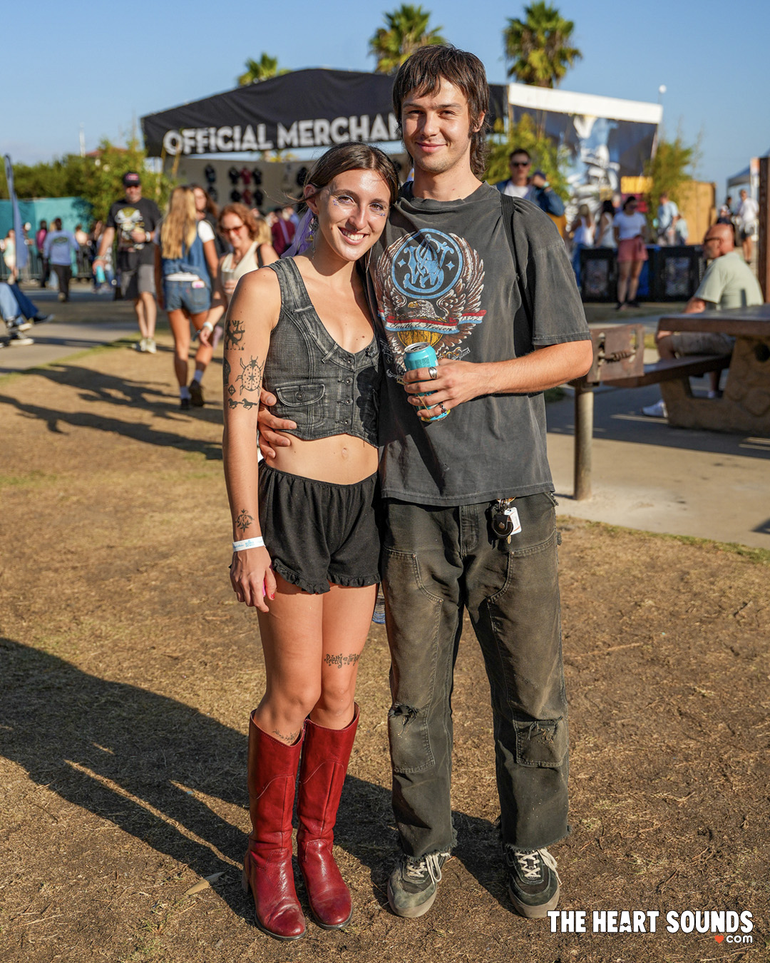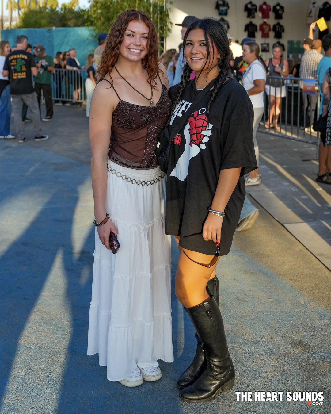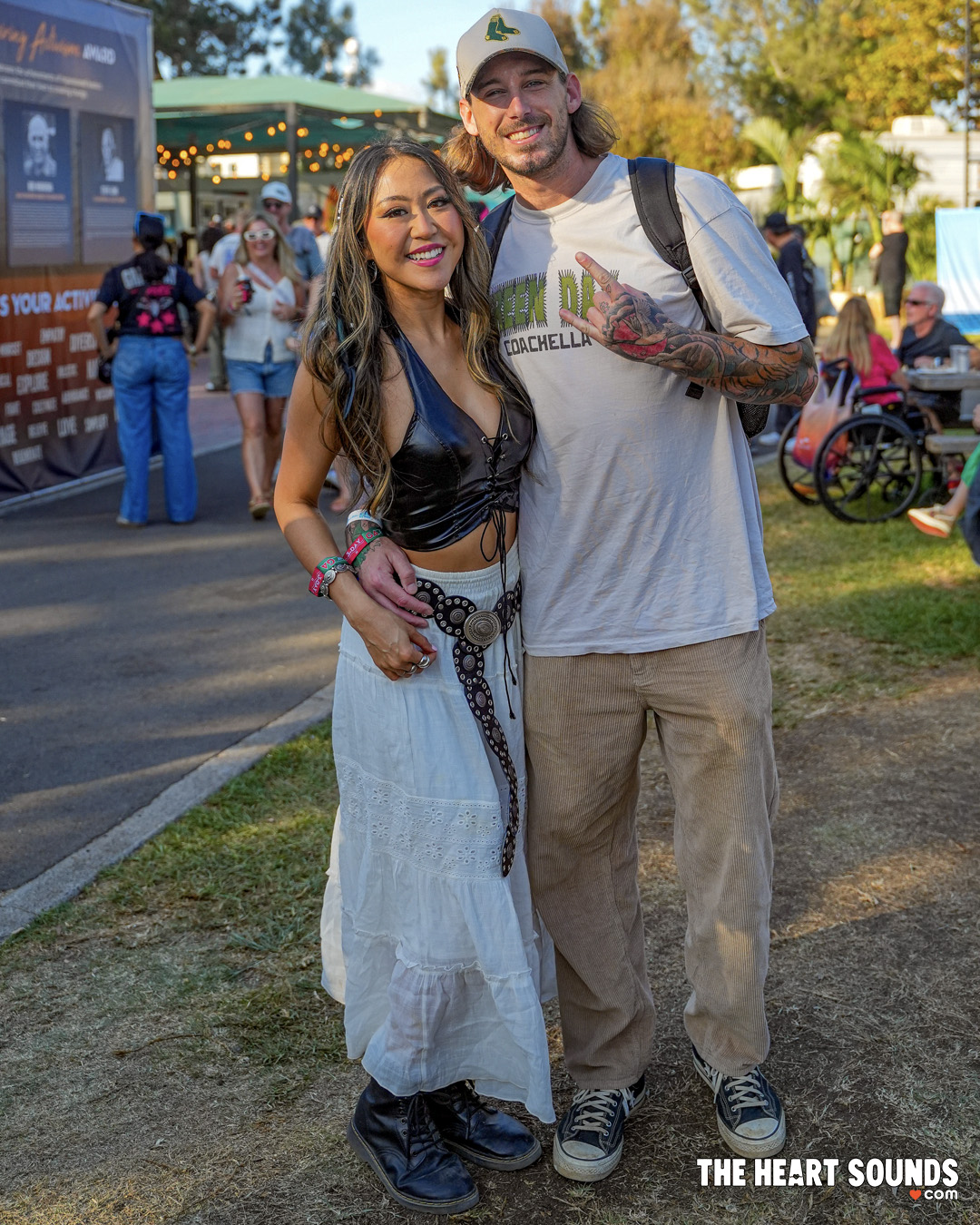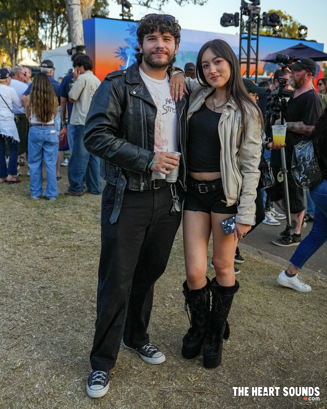 The beachfront breeze dictated layers: denim jackets thrown over flowing sundresses, oversized flannels cinched at the waist, and crochet tops that looked plucked straight from a 1970s record sleeve. Green Day fans brought punk back to the sand—studded belts, ripped black jeans, streaked eyeliner, and streaks of neon hair. Hozier’s crowd leaned earthy and ethereal, mixing long skirts, lace, and linen with soft boots and wide-brim hats that mirrored his mythic, folk-rooted vibe.