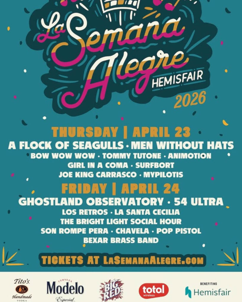 San Antonio, clear your calendar. La Semana Alegre is back April 23–24, 2026, at Hemisfair, and this year’s lineup proves the Party in the Park isn’t slowing down anytime soon. Two nights. Two stages. A collision of ‘80s nostalgia, indie cool, Latin groove, electronic pulse, and hometown pride.