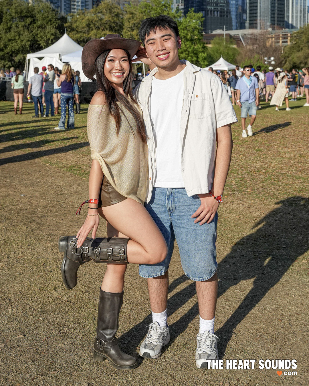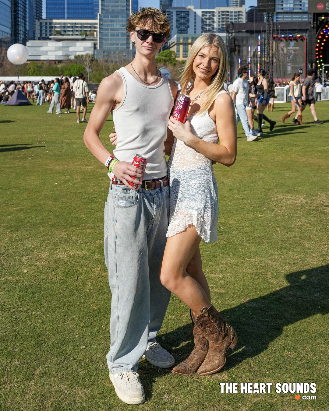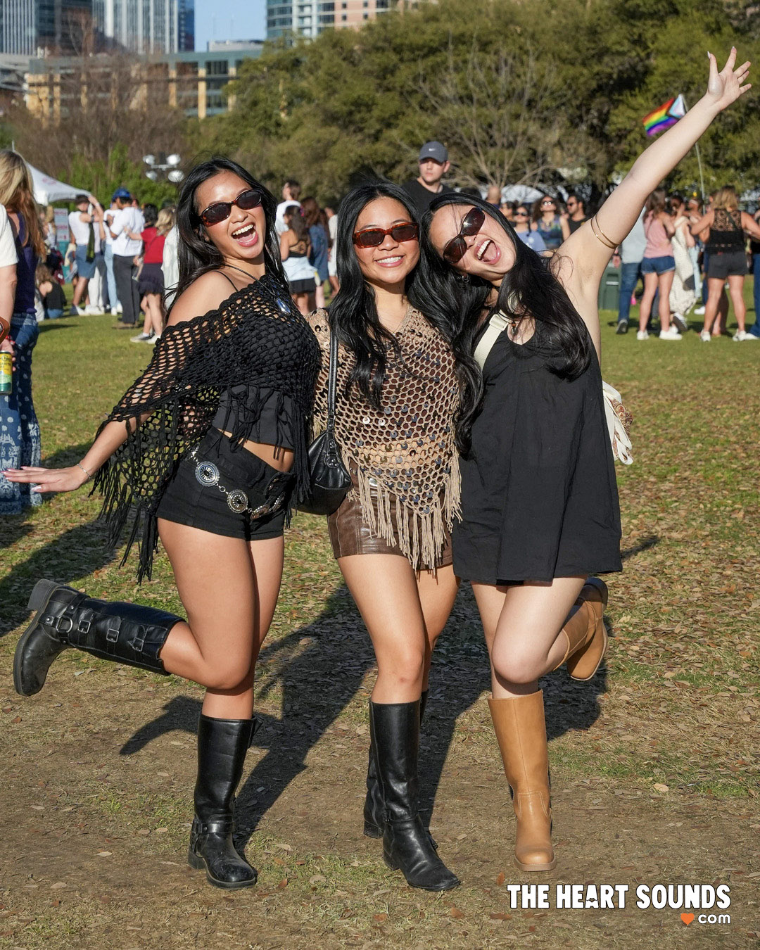 Between sets from artists like Christina Aguilera, Calvin Harris, Stephen Sanchez, Grouplove, Foster the People, and Major Lazer Soundsystem, festivalgoers delivered a fashion moment that felt just as vibrant as the music on stage. Everywhere you looked there was something eye catching. Retro band tees paired with denim shorts, glittery boots stepping confidently across the grass, oversized sunglasses catching the Texas sun, and vintage western hats that felt perfectly Austin.