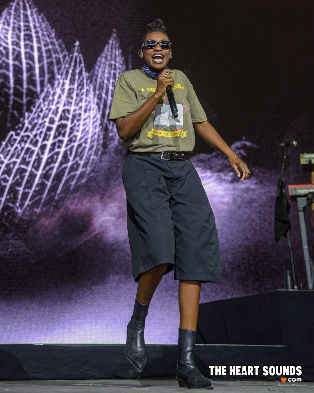 The English Simbiatu rapper and actress “Simbi” Abisola Abiola Ajikawo, better known by her stage name Little Simz, came in sharp and direct. No slow build. “Thief” and “Flood” hit fast, and the crowd reacted immediately.