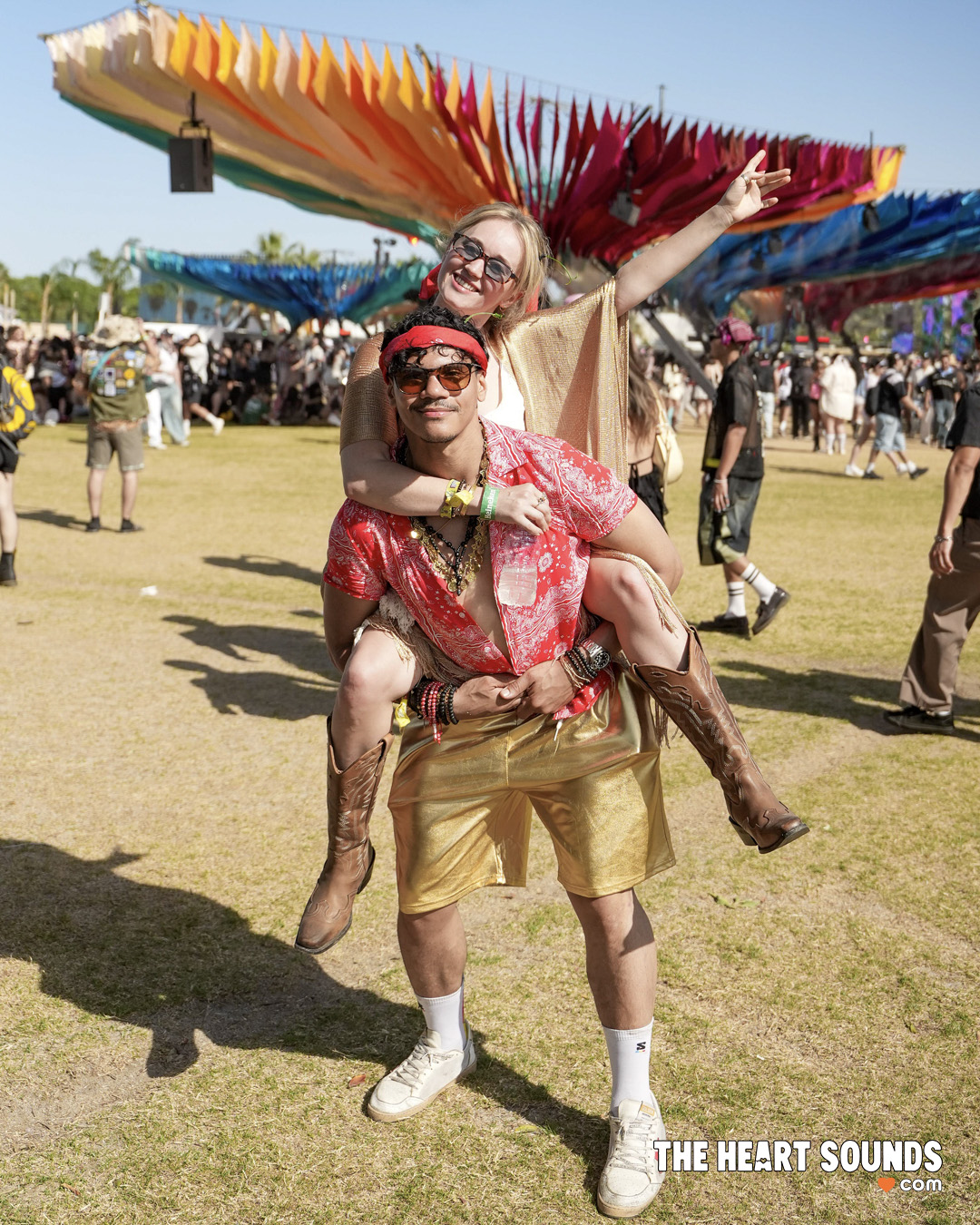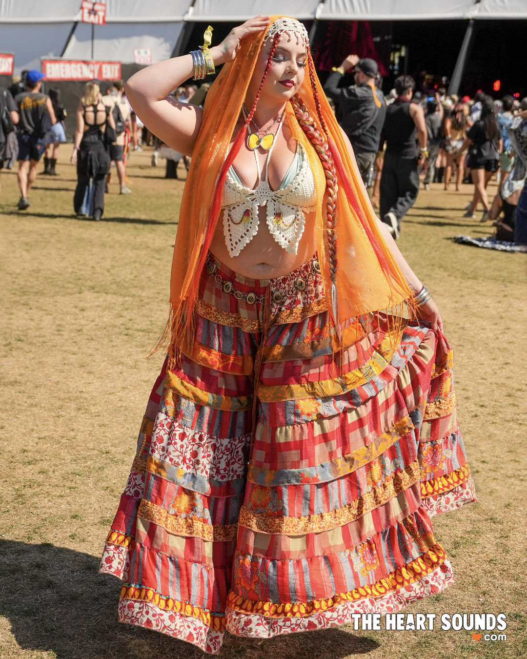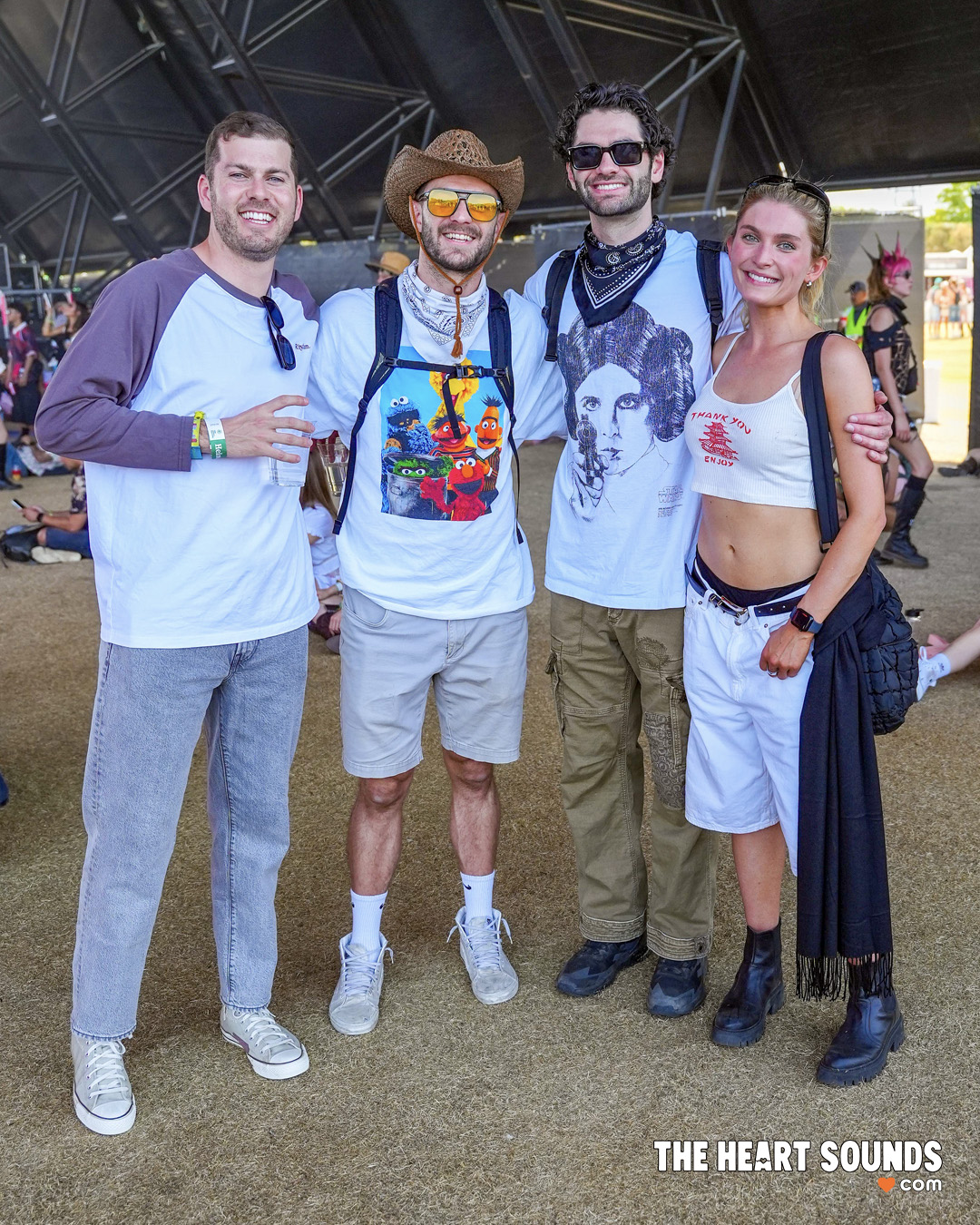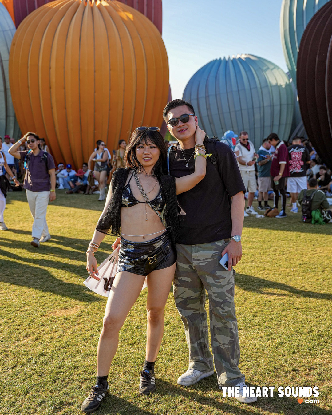 Walking through the fields felt like flipping through a live style feed. Bright colors everywhere. Vintage band tees next to handmade pieces. Baggy fits, relaxed layers, boots covered in dust, sunglasses that didn’t make sense but somehow worked. Some people went full eccentric, mixing textures, glitter, and bold accessories. Others kept it simple with oversized shirts, shorts, and sneakers. Both felt right.